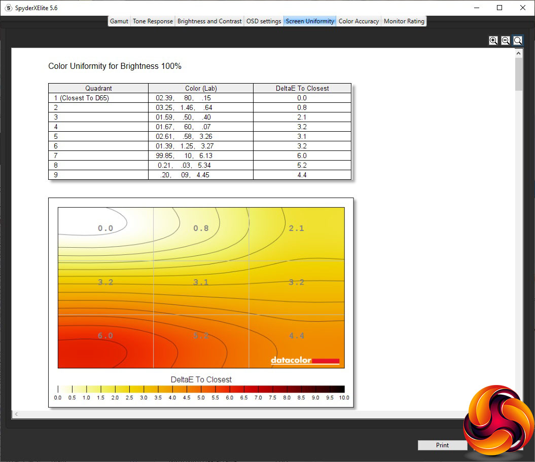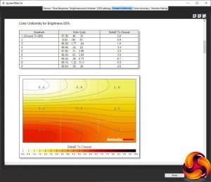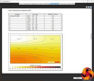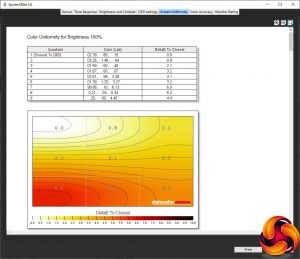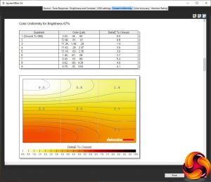 Our main test involves using a DataColor SpyderX Colorimeter to assess a display’s image quality. The device sits on top of the screen while the software generates colour tones and patterns, which it compares against predetermined values to work out how accurate the screen is.