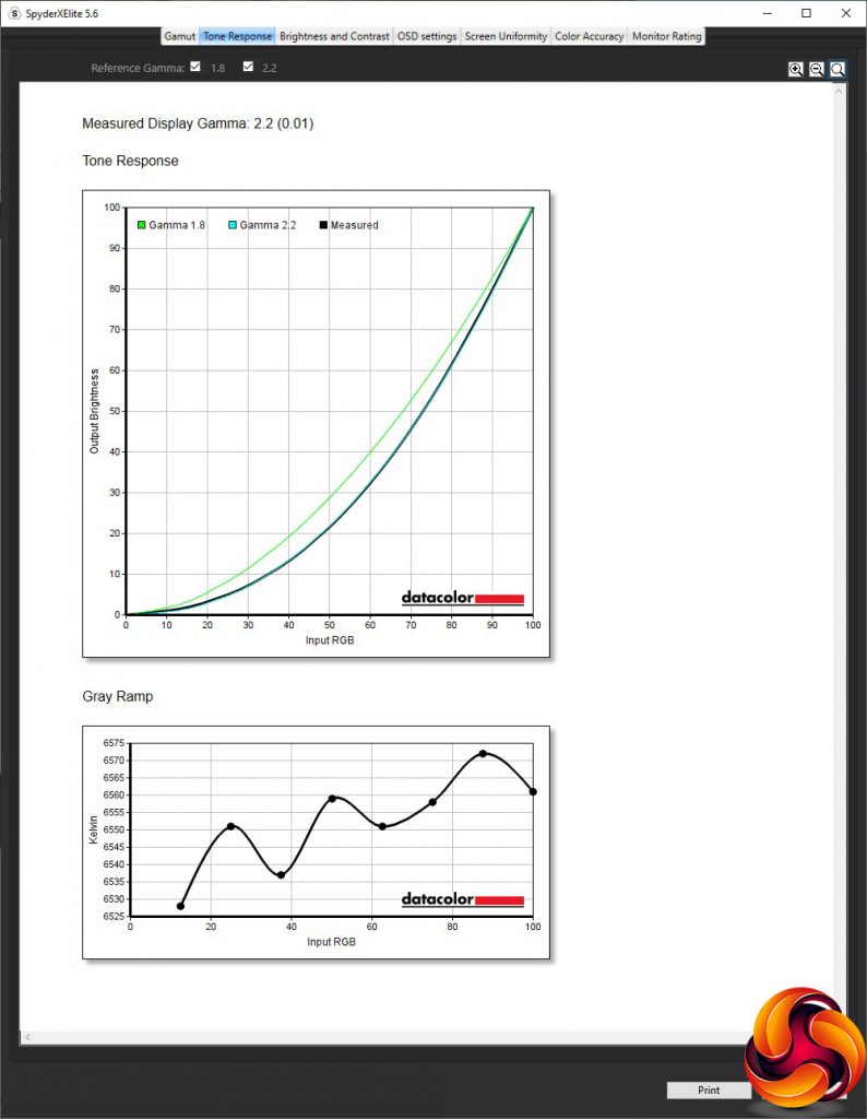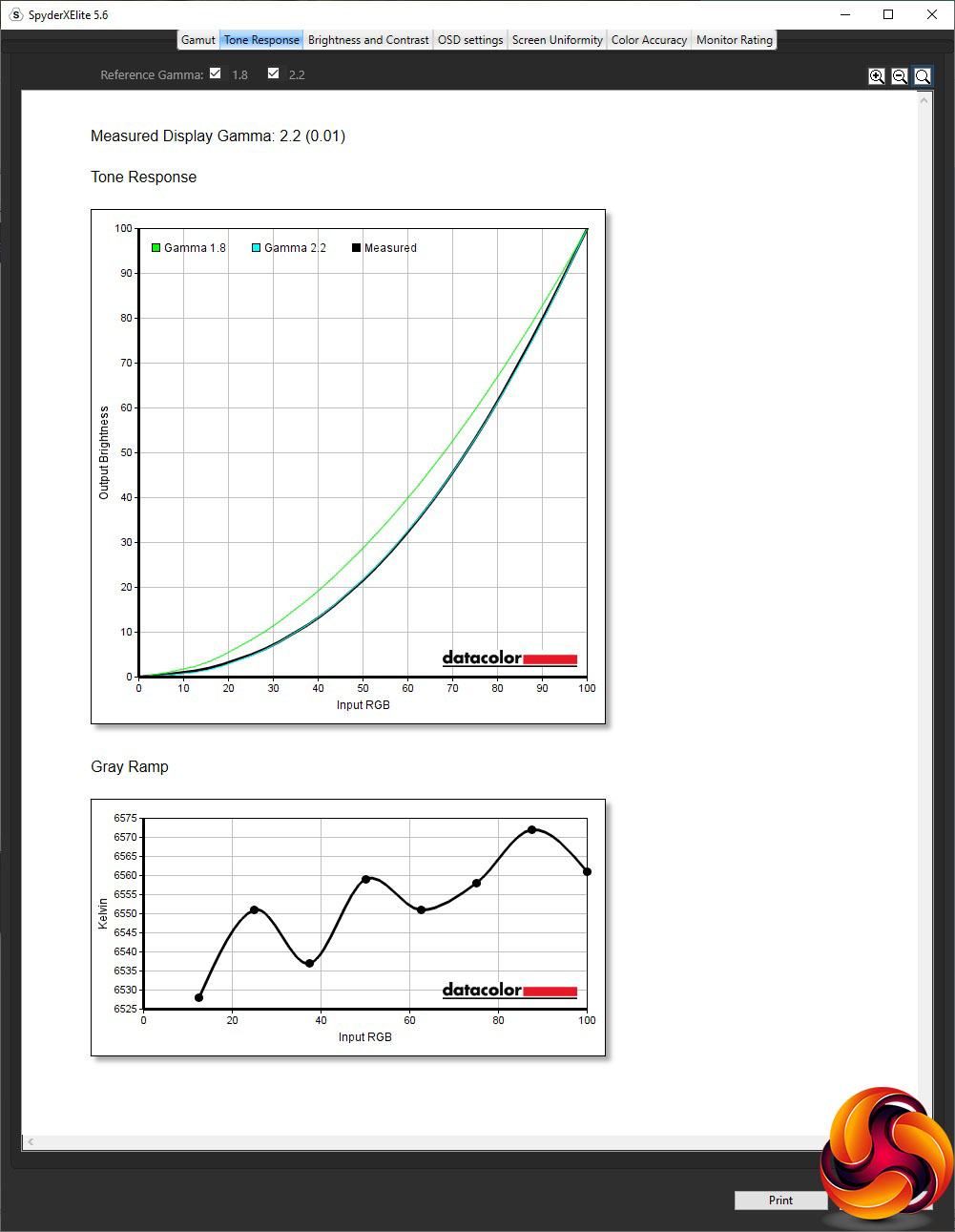 With the exception of the 1.8 option, the gamma readings correspond exactly to their nominal values. This is reassuring if you want to set a specific gamma level.