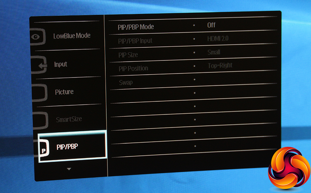 The PIP/PBP menu option copies the features of the standalone quick menu described above, but also lets you choose where your picture in picture sits on the screen.