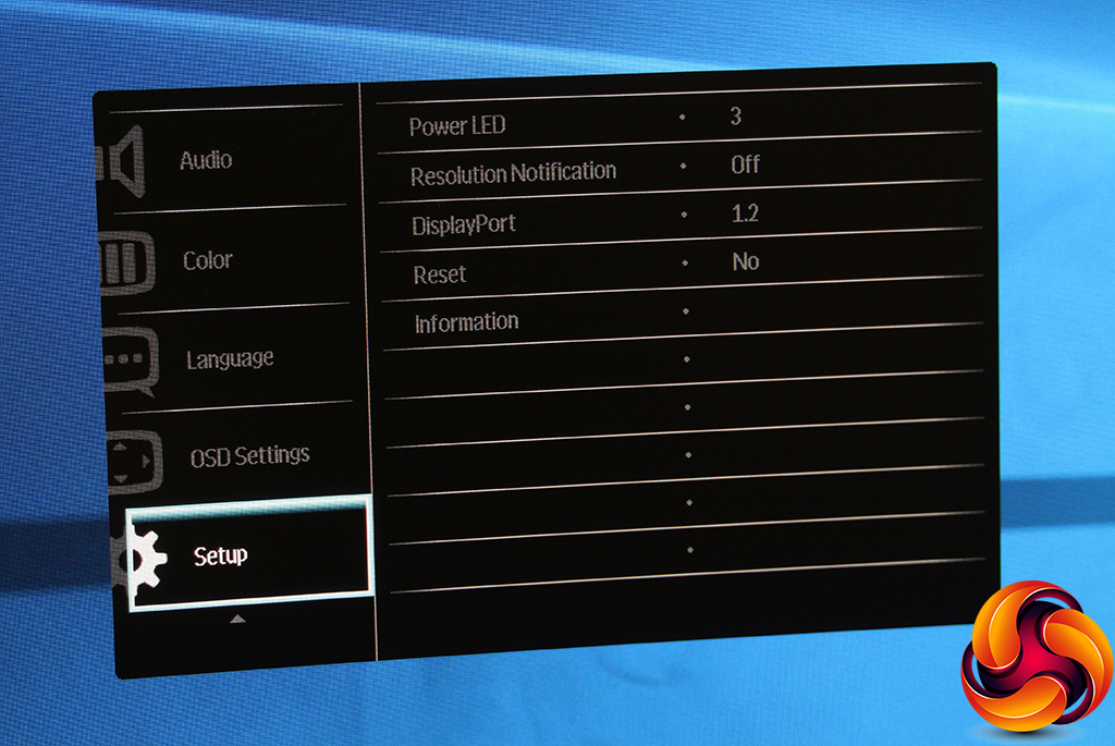 Sundry configuration options can be found under Setup, including how intense the power LED that lights the Philips logo at the bottom is, plus the facility to reset to factory defaults.