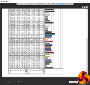 - The colour accuracy, expressed as a Delta E ratio, with a result under 3 being fine for normal use, and under 2 being great for colour-accurate design work.