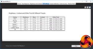- A monitor’s contrast ratio at various brightness levels in the OSD.
