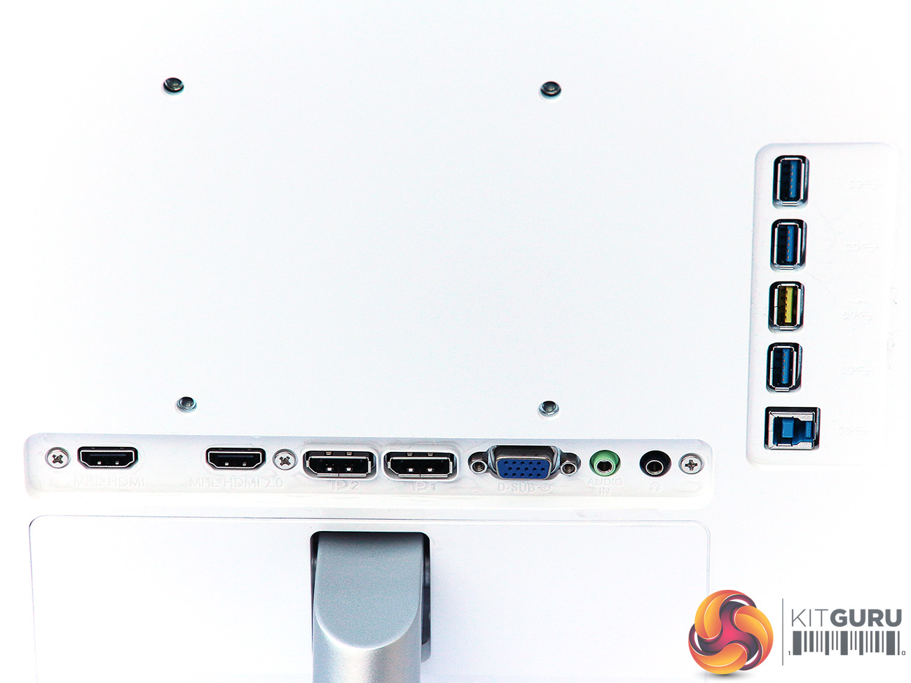 There’s a good range of ports available. Two DisplayPort 1.2a connections are included, plus a pair of HDMI – one for 2.0 signals, one for 1.4 only, with both supporting MHL, for connecting mobile phones and tablets. There’s also a VGA connection, which presumably has been included for reasons of nostalgia rather than any likelihood that you will use it very often.