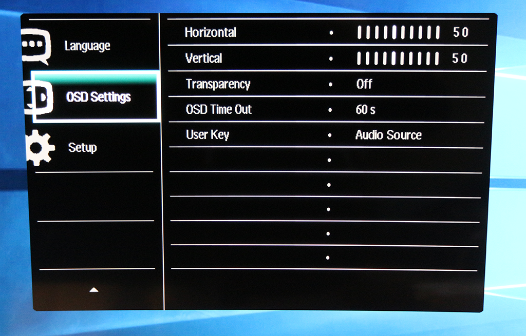 The OSD settings let you adjust the location and appearance of the main menu, but not the quick menus that appear for other functions.