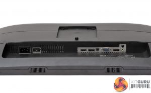 Most of the ports are on the left-hand underside of the screen (assuming you're looking from the front, unlike in the pictures above), with just the power connection and mains switch on the right. Aside from there being no DVI input, the video connections are comprehensive. There's an HDMI 2.0 port with MHL support for smartphone connections.