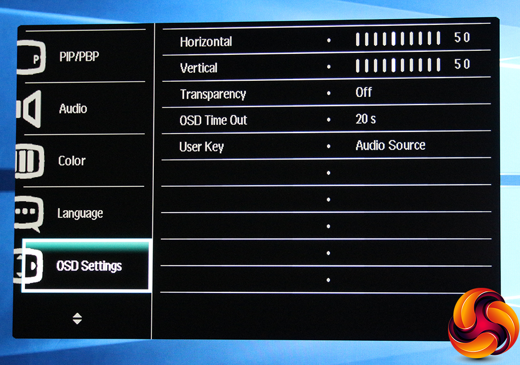 Various options for configuring the appearance of the menu are available under OSD Settings, including its position onscreen, transparency level, how long it stays visible for, and there's also the option to change which Quick Menu the third User key calls up. So you could change this to the video input or volume control.