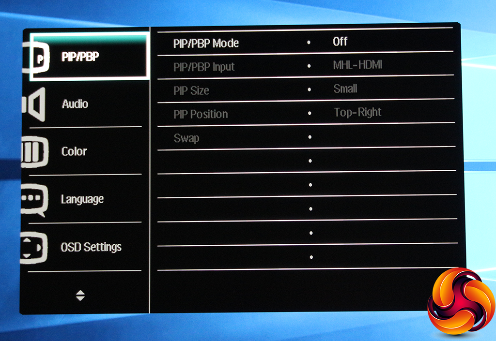 The main menu's picture-in-picture and picture-by-picture options are more extensive than the quick menu's. You can choose inputs and positioning, as well as size.