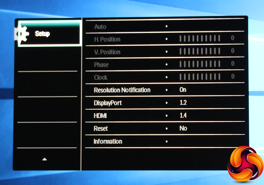 Finally, the Setup screen includes sundry bits and bobs that didn't fit elsewhere, including DisplayPort and HDMI levels.