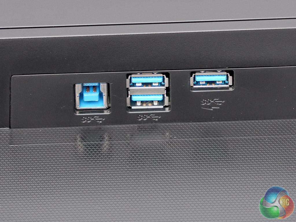 The upstream USB 3.0 port and three downstream ports are placed reasonably accessibly on the side, although they are recessed quite a bit so you will need to reach around the bezel to get to them. We suspect that the fourth USB downstream is taken for the next feature up for discussion: