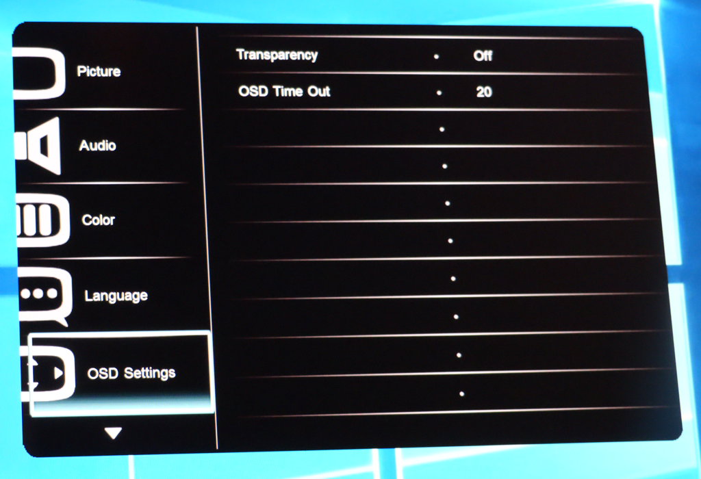 There's not much on offer when it comes to OSD settings. You can't, for example, change the location of the OSD on the screen.