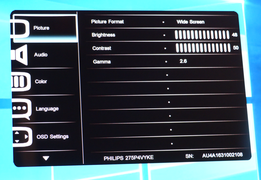 Overall, there's enough in the OSD for the intended market. Since this isn't really a gaming screen, you wouldn't expect any particular features for this kind of user, and indeed there's just the gaming SmartImage preset. But you good have good control over image quality for more serious applications. Overall, the options are good, if not exceptional.