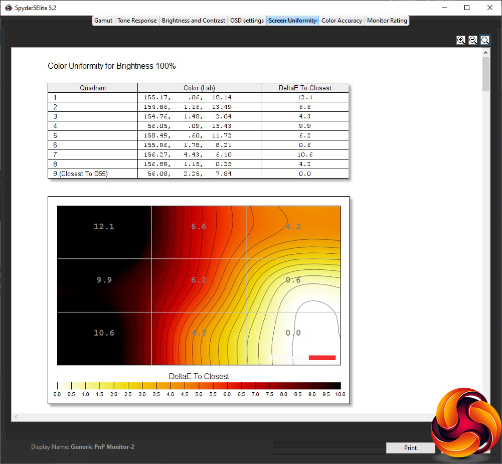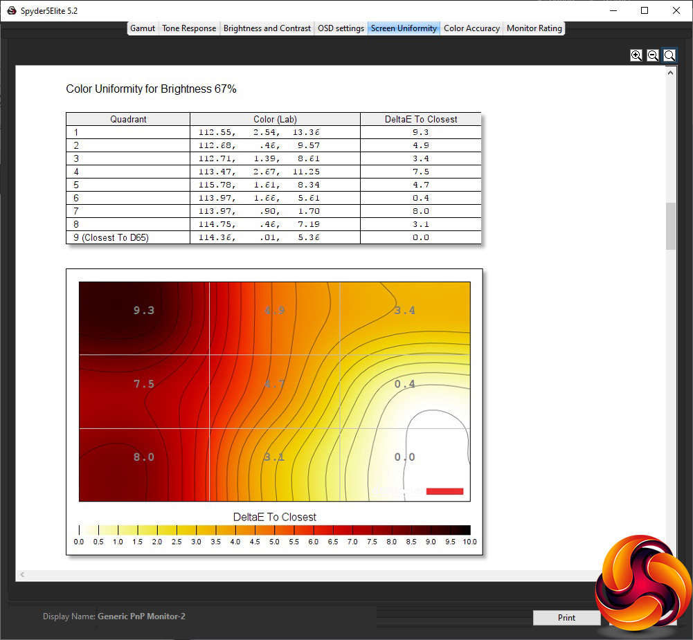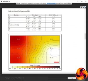 Our main test involves using a DataColor Spyder Elite 5 Colorimeter to assess a display’s image quality. The device sits on top of the screen while the software generates colour tones and patterns, which it compares against predetermined values to work out how accurate the screen is.
