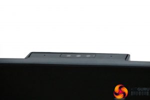 This is a serious-looking screen, and the build is very solid. The general theme is black, but with a combination of black plastic, brushed metal, and some elements that are more like dark grey, in particular the stand. It feels very stable on the latter.