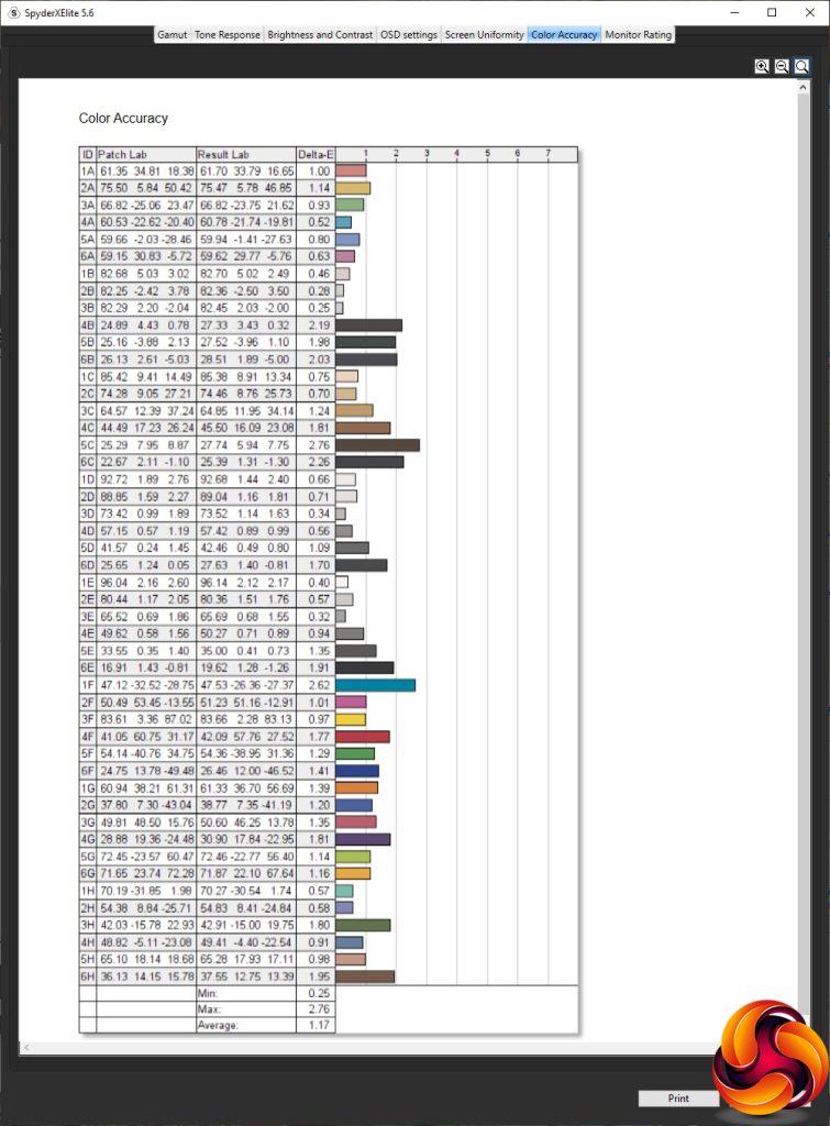 - The colour accuracy, expressed as a Delta E ratio, with a result under 3 being fine for normal use, and under 2 being great for colour-accurate design work.