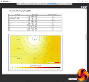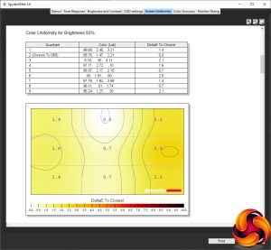 This screengrab underlines how ridiculously wide this screen is. Across the top edge, brightness uniformity is excellent, with very low variation. The left side and bottom left are also decent. Only the right-hand-side and right-hand corner pose any concerns.