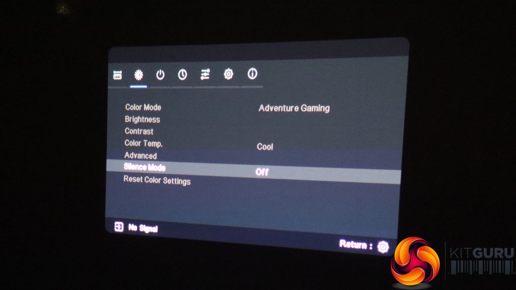 The next tab along provides Color Mode presets, which we have already detailed above. You can also adjust brightness and contrast, or select a colour temperature preset, as well as configure RGB settings manually. The Advanced options include the ability to adjust parameters like sharpness and gamma. Silent mode reduces fan noise.