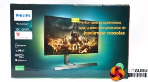 The Philips Momentum 279M1RV box subtly implies its gaming focus, but it's definitely not as showy as some manufacturers' gaming screen packaging.