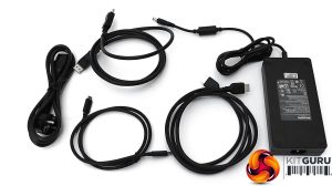 Inside, there are cables for DisplayPort and HDMI video connections, plus USB C, and of course the external power brick and its associated mains cord. Our sample only came with an EU cord but it was shipped from Philips's European PR company.