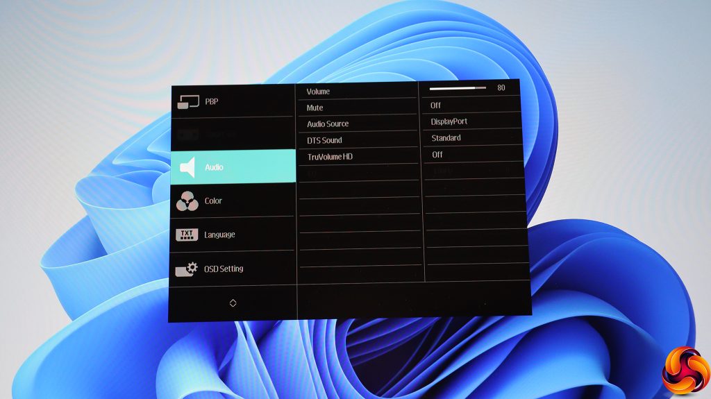 Aside from varying the volume, muting, and choosing which digital source is supplying the sound, you can also enable DTS and TruVolume HD under the Audio settings.