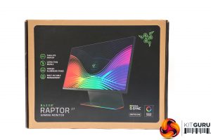 The Razer Raptor 27 box is quite stylish too, but we're surprised not to see gaming graphics superimposed on the screen, since that's what it's for.