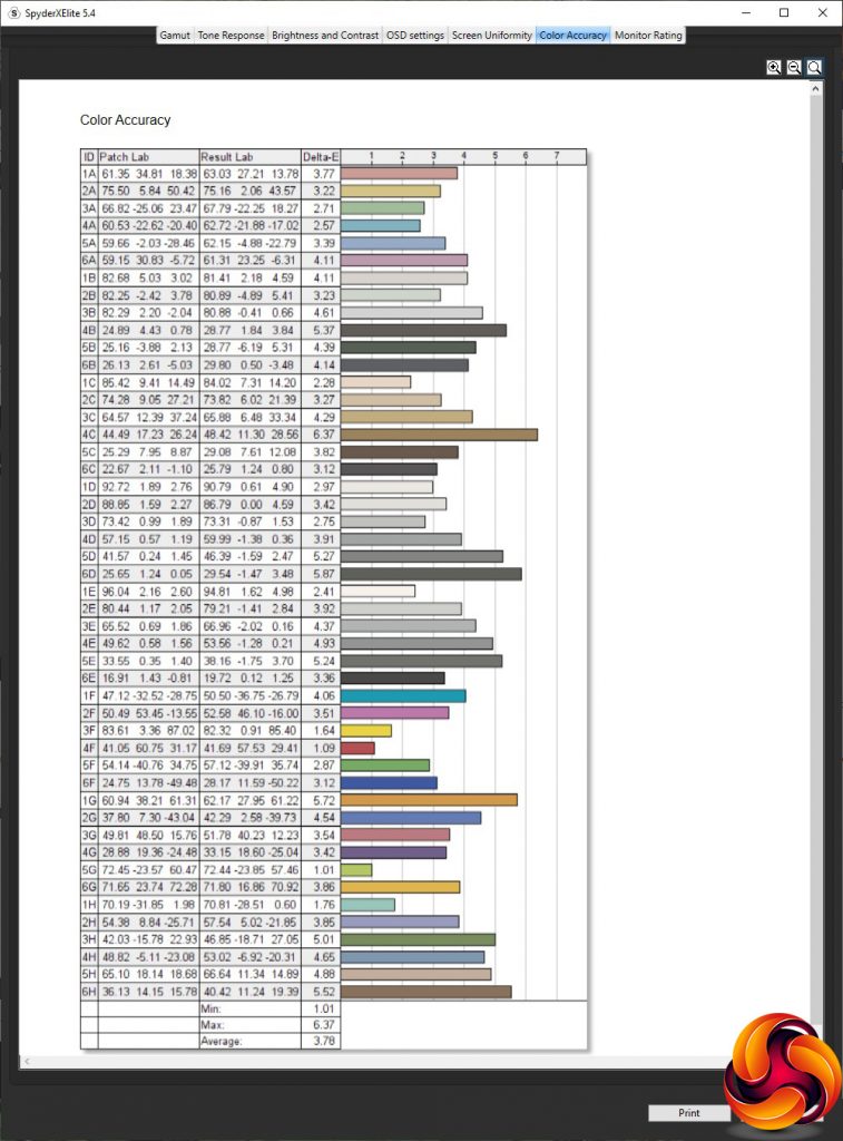 We were expecting a much better colour accuracy result than 3.78 from a monitor this expensive. This didn't make a lot of sense, so calibration with the SpyderX seemed essential.