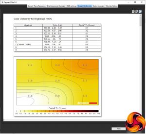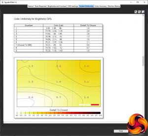 Our main test involves using a DataColor SpyderX Pro Colorimeter to assess a display’s image quality. The device sits on top of the screen panel surface while the software generates colour tones and patterns, which it compares against predetermined values to work out how accurate the screen is.