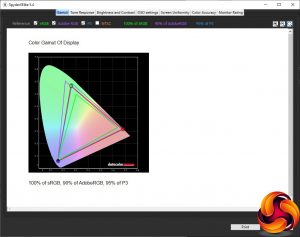 The sRGB and DCI-P3 gamuts remained unchanged at 100 and 95 per cent respectively after calibration, although AdobeRGB has dropped slightly to 89 per cent.