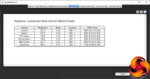 - A monitor’s contrast ratio at various brightness levels in the OSD.