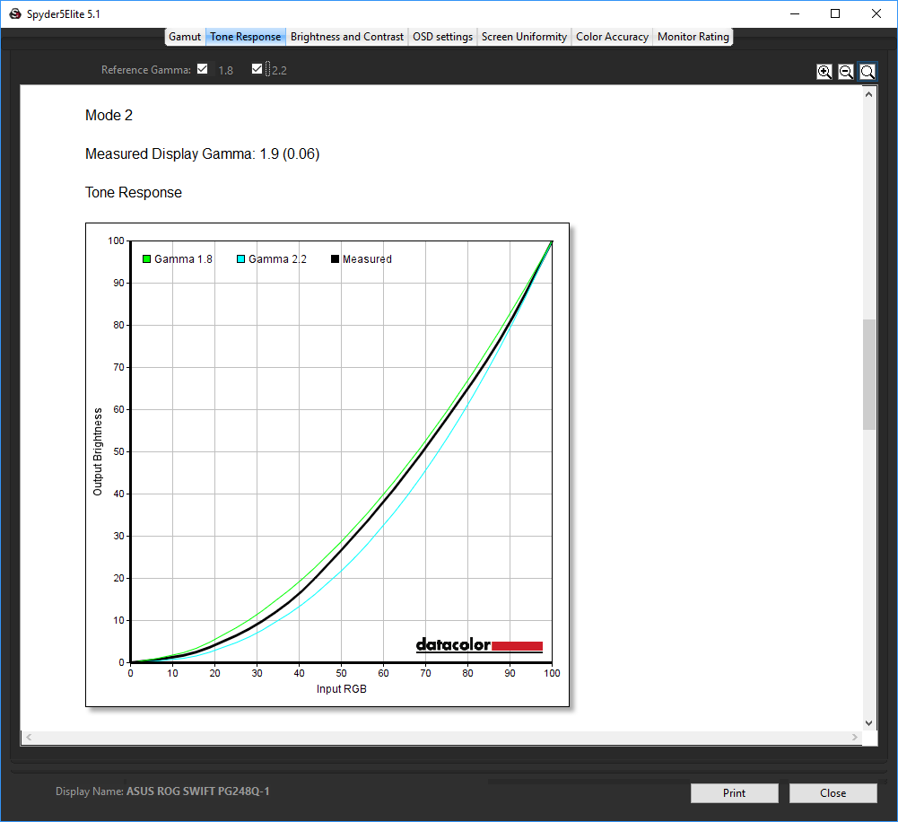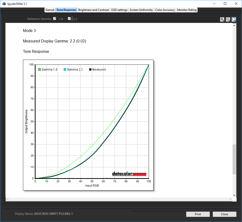 - The exact gamma levels, with a comparison against preset settings in the OSD.