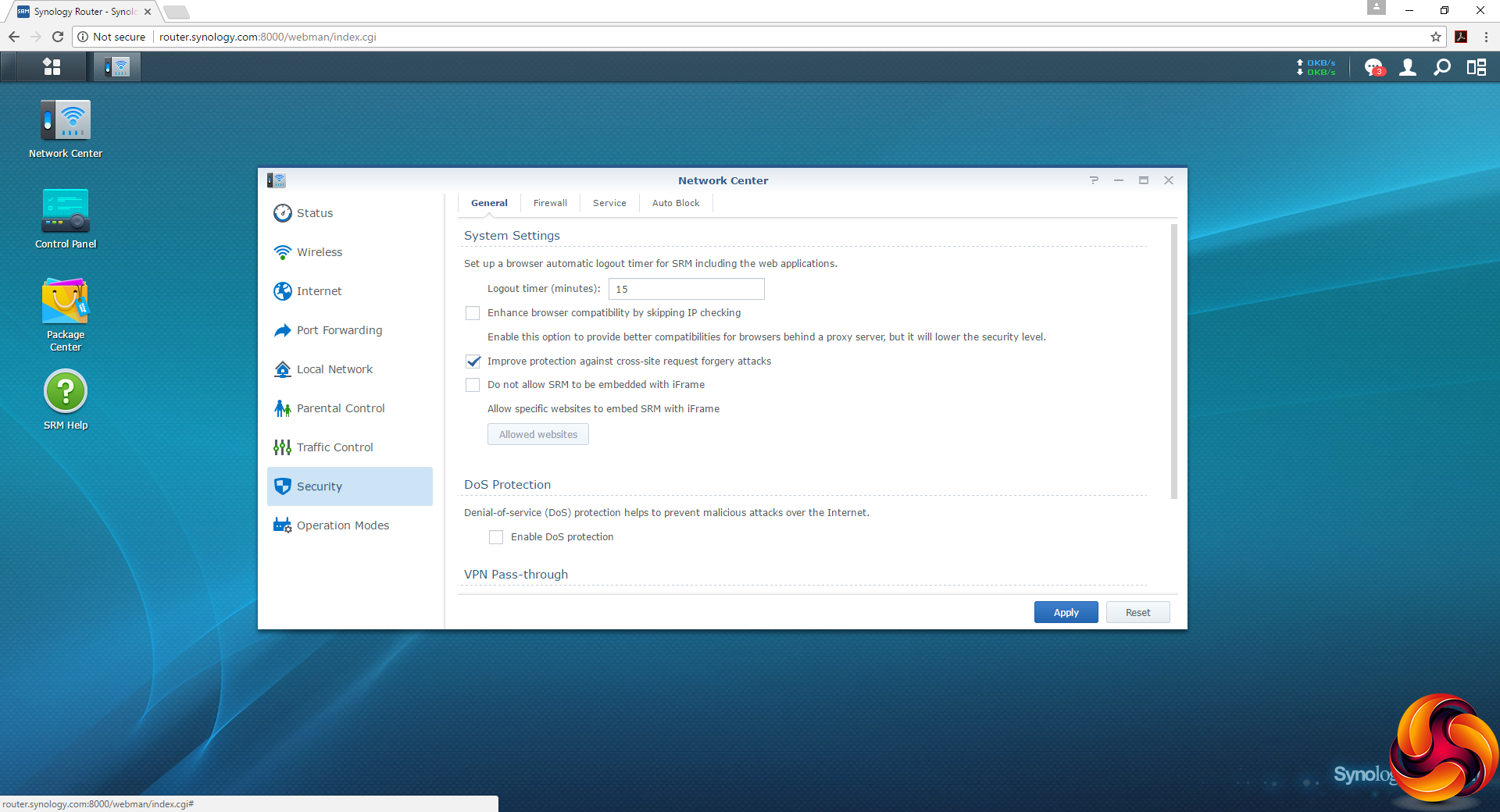 After the reboot, the familiar Synology interface appears. This looks very similar to Synology NAS devices. The first thing you should then do, assuming you are connected to your broadband already, is update your firmware.
