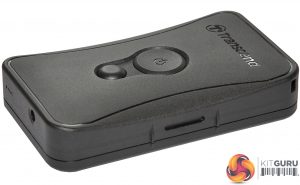 The CMOS and F1.8 lens sit in their own separate unit that is attached via a wire to the base module. Transcend doesn't divulge either the size or the pixel count of the CMOS, however. So we can't make any educated guesses about potential image quality. However, the camera is robustly constructed and the whole setup with the module below meets IPX4 standards, which means that it is resistant to being splashed with water from any direction, but isn't fully waterproof so can't be submerged. This isn't a divecam, in other words, but a bit of rain or someone throwing a drink at you won't be a problem.