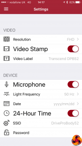 You will also need to download the DrivePro Body software for iOS or Android, depending on your phone. With the phone WiFi connected to the Body 52, the DrivePro Body app will be able to access the camera wirelessly, giving you the option to view what it's viewing, or browse the memory contents.