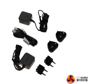 As usual, the box contains power adapters, in this case with UK and EU plug options, plus a regular (non-ribbon) Ethernet cable.