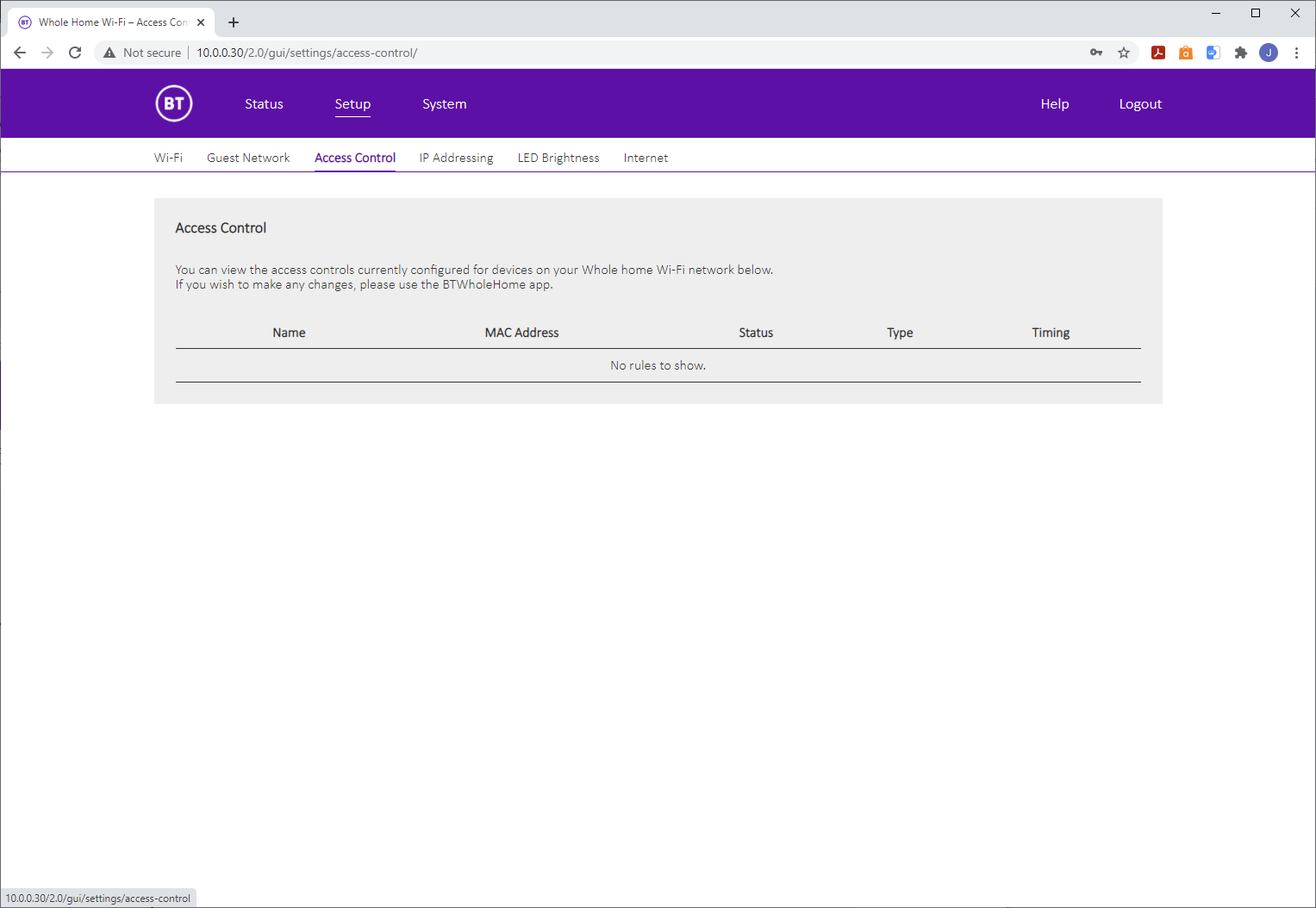 Beyond that is the ability to control access for individual client devices and set up Guest WiFi. There is no port forwarding, DMZ, or advanced firewall abilities such as filtering. This is the most limited range of router features on test, and hints that Premium Whole Home WiFi is intended to be added onto a more fully featured BT router.