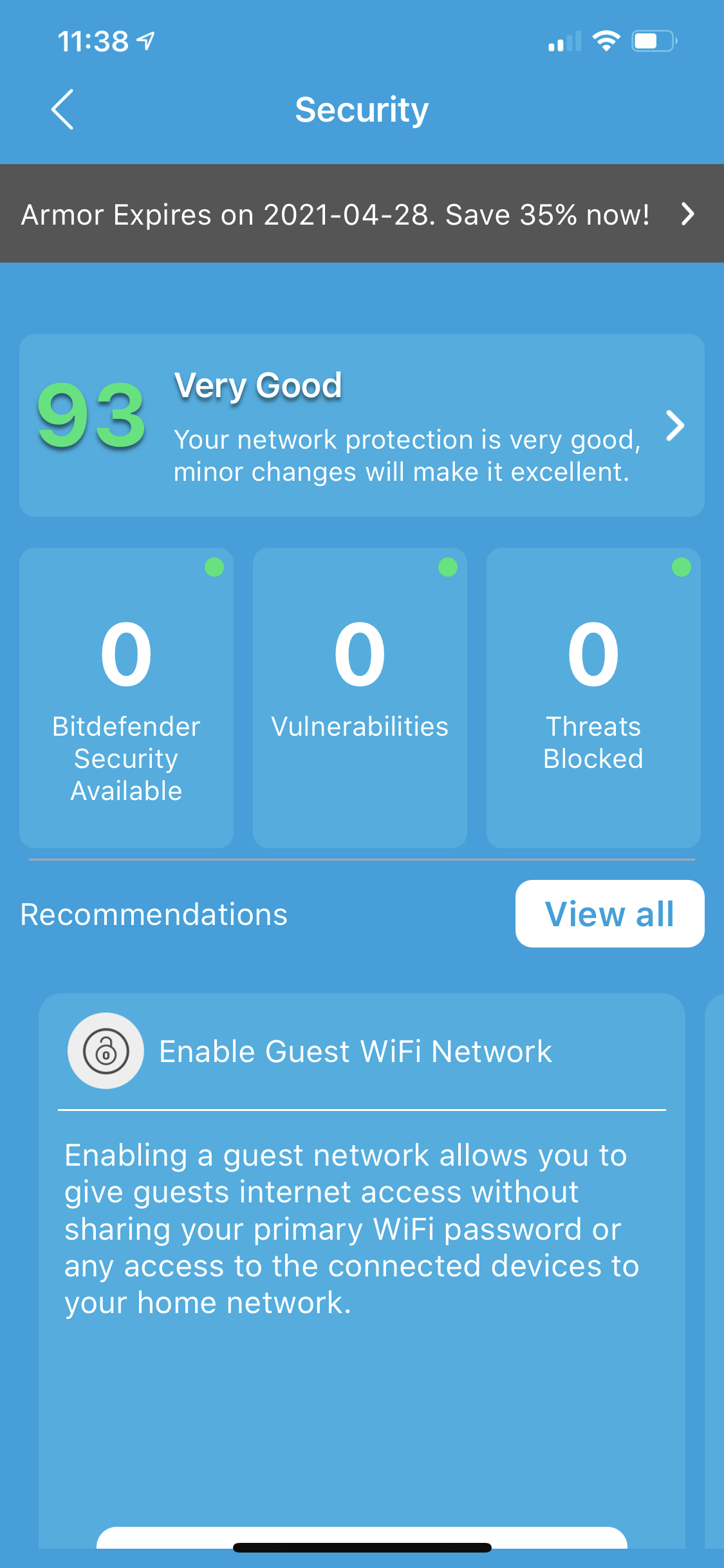 As before, there aren't many features in the smartphone application, just the ability to view Armor security settings and the devides on the network including clients and mesh satellite. You can also test your broadband speeds as well as change a few WiFi settings, including setting up a guest network. The Traffic Meter is also available.