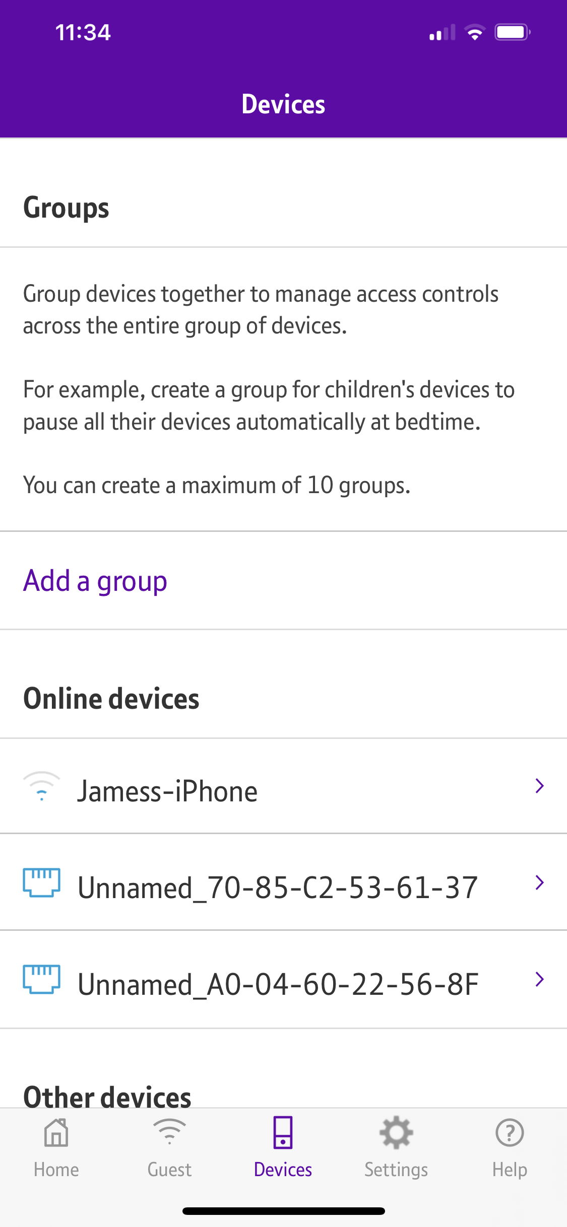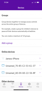 Once the mesh is configured, there aren't that many features in the app, just the ability to group devices, change WiFi settings, and monitor or limited data usage.