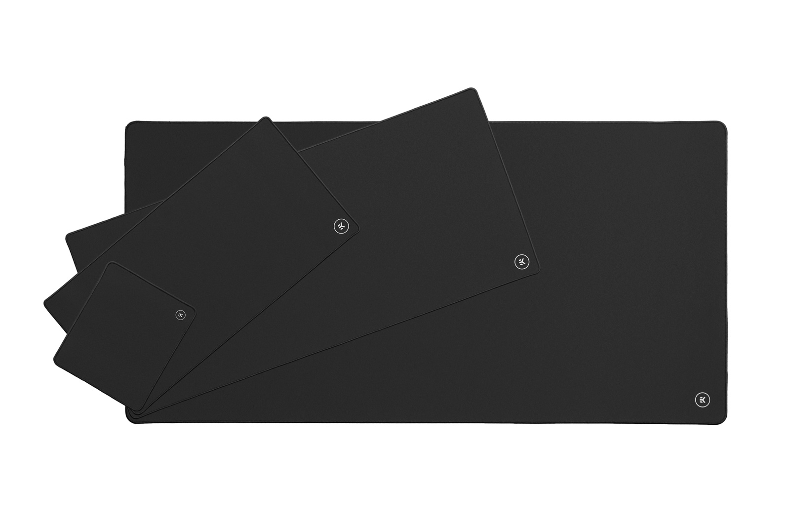 Regardless of the format, all mats are 3mm thick. The grey mouse pad is only available in a large format (900x400mm). The black ones will come in small (240x200mm), medium (600x300mm), large and extra large sizes (1220x600mm).