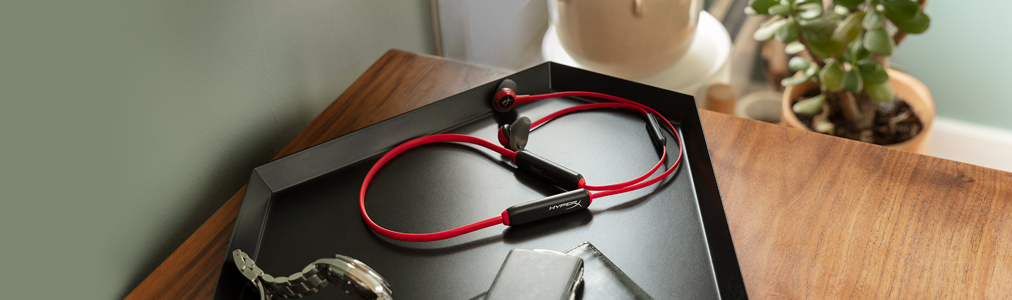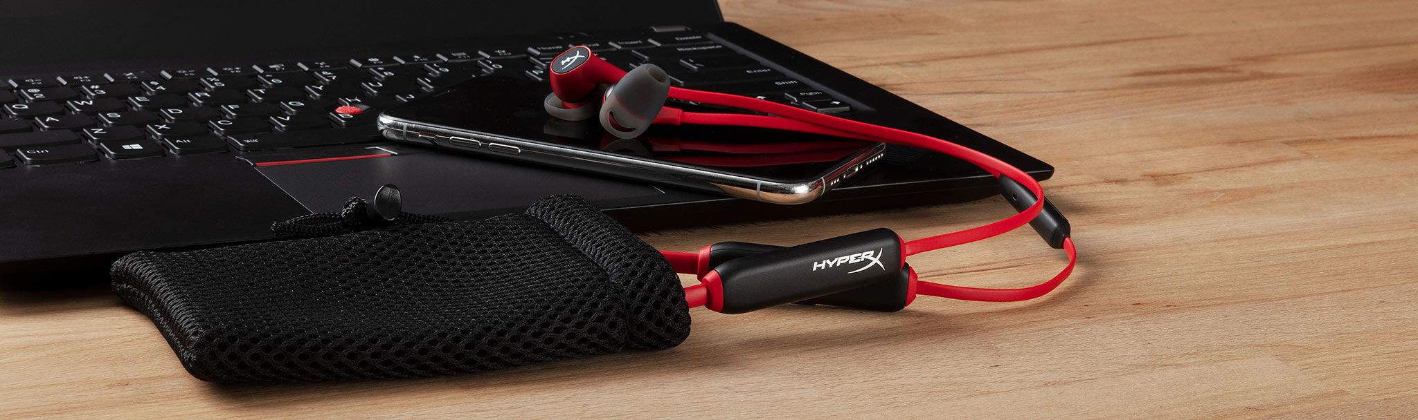 The Bluetooth 5.0 wireless connectivity features Qualcomm aptX HD for easy pairing. The 14mm neodymium dynamic drivers feature a 20Hz-20KHz frequency response, an impedance of 65.2Ω, and a maximum noise level of up to 104±3dB, delivering the signature HyperX sound in a new format. The two earbuds are connected with a neckband and feature a wireless range of up to 10m. The omnidirectional microphone features a 100Hz-7.2KHz frequency response and a sensitivity of -16.5dBV.