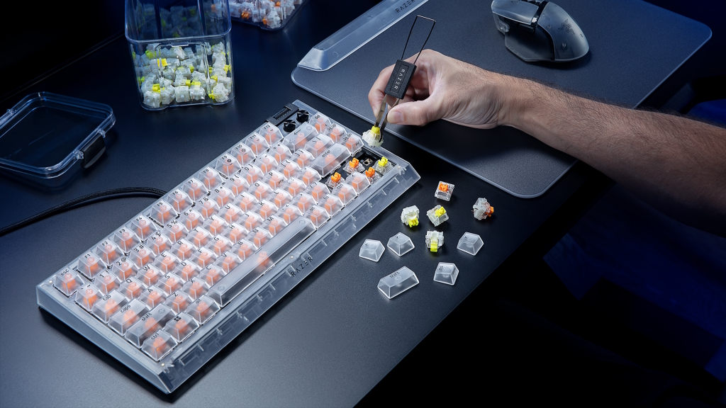 Razer says the internals of each device have been re-engineered and colour-matched to ensure a cohesive look through the transparent white chassis. The design aims to highlight the internal mechanisms of the hardware while also amplifying the effects of the integrated Razer Chroma RGB lighting.