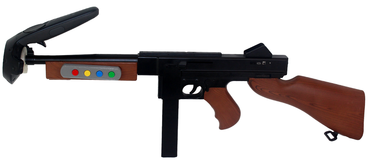 As much as the HTC Vive's wand controllers are a good amalgamation of what it's like to hold a gun, thanks to their shape and trigger design, it's not quite the same as peripherals of gaming's past. Looking to change that is The Persuader, a realistic looking M1A1 Thompson that holsters your controller and lets you really gun down your enemies.