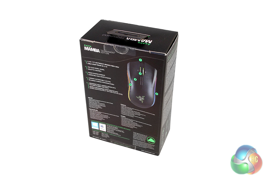 The packaging for the Razer Mamba Tournament Edition is very minimalist. While it does have a nice image of the mouse on the front and some specifications and feature break downs on the rear, it is not much bigger than the peripheral it contains. That seems less wasteful than some products we have looked at lately and is a nice change.