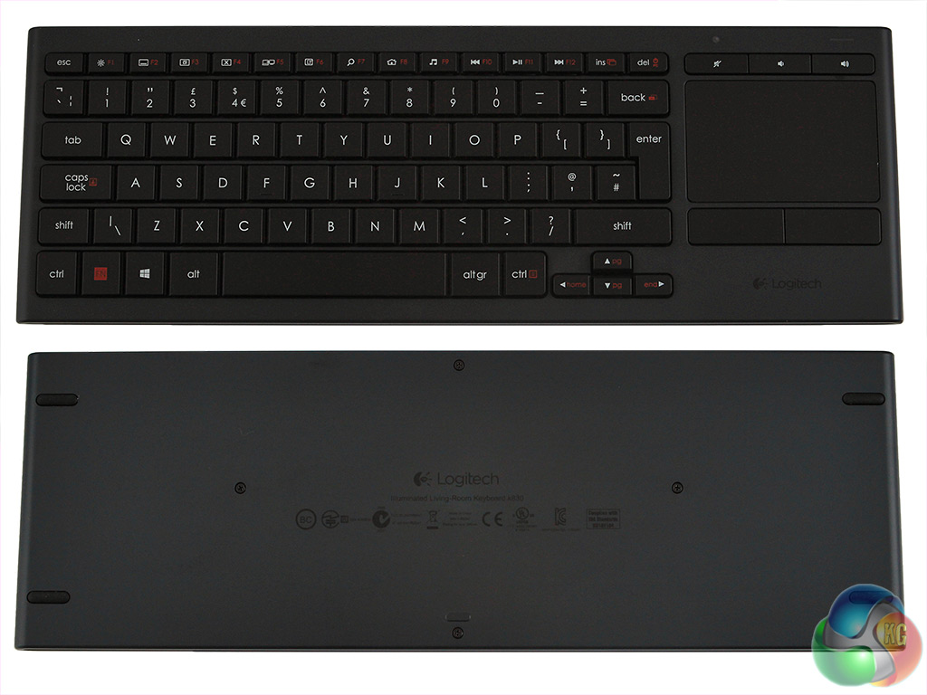 Weighing in at 495 grams, the Logitech K830 is a substantial piece of kit. It has a robust feel, solid in the hand, but not so heavy as to be cumbersome. It's just under 37cm long and just over 12cm high and 1.65cm deep. The touchpad on the right hand side measures 8cm x 5.2cm and is a good size for a control surface.