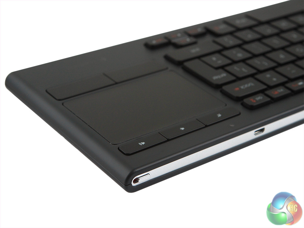 If you are laying flat when using the keyboard, then prepare for a mini-revolution in fingering. We found ourselves doing it two handed, using our right thumb on the pad and our left index finger on the rear-facing left-mouse button. One obvious downside for this method of control would be that it does not suit left handed people at all. Given that less than 15% of the UK population is left handed, Logitech is still aiming for a large chunk of the available market.