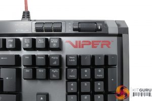 The wrist rest is separate from the main board, utilising magnets to attach rather than hinges. While this removes the the degree of flexibility you usually get from hinges, it gives the user customisable RGB lighting in the form of a stripe that intersects the Viper snakehead logo to the right.