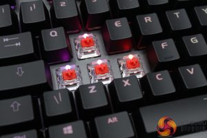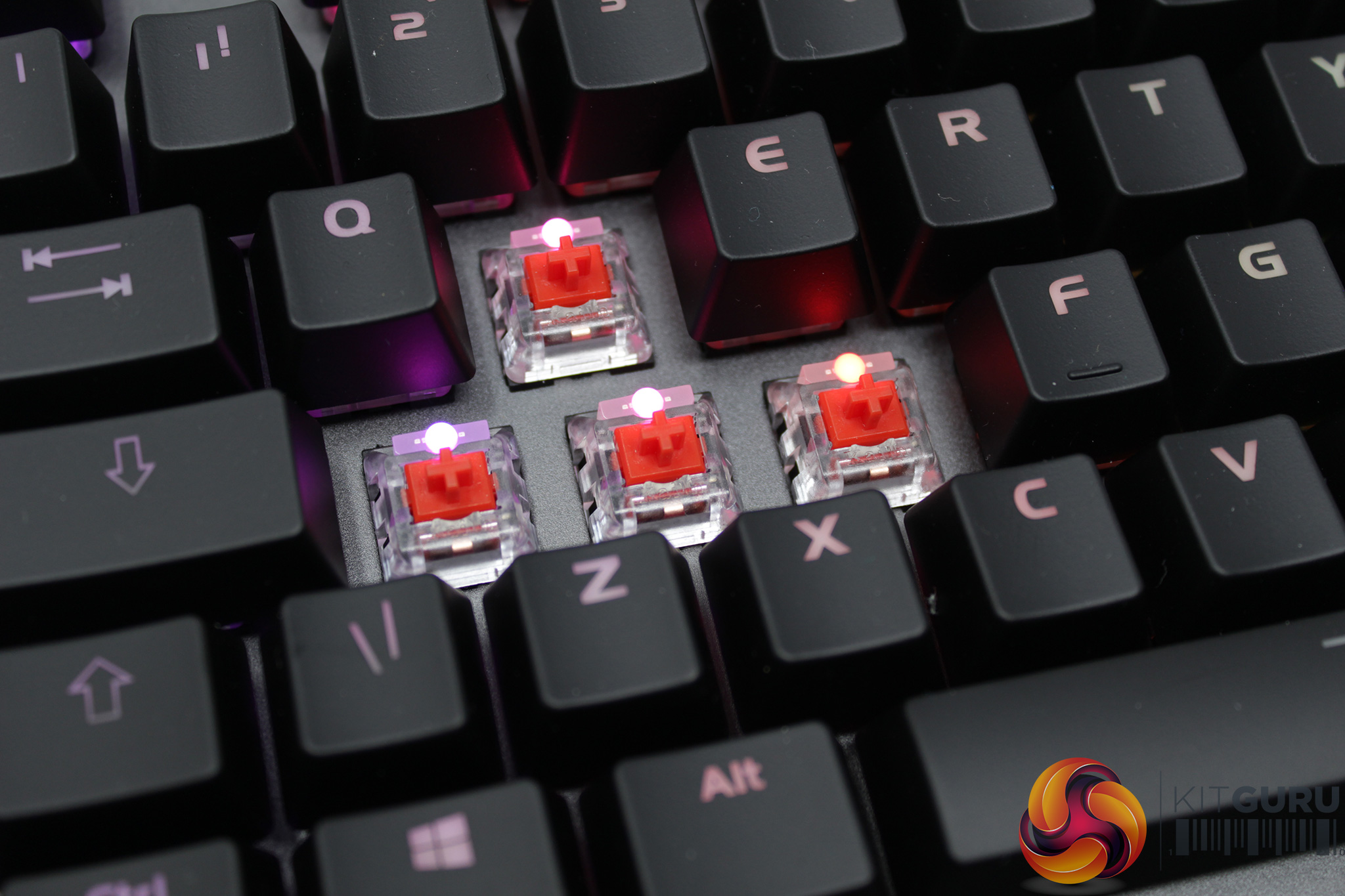 The V770 uses Kailh Red switches, with no sign of any other options currently on the market. All are integrated with LED bulbs, giving the user a choice of 16.8 million colours per-key.