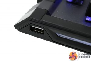 The Viper V770 continues to illuminate your room with an RGB LED strip either side of the keyboard. To the right hand side of the keyboard is also an audio pass-through, built specifically to make headphones and microphones a little more accessible. To the left is a USB pass-through that can be used for anything from USB-powered such as headsets and mice.