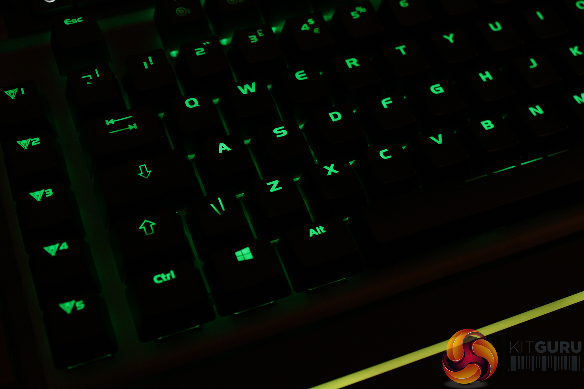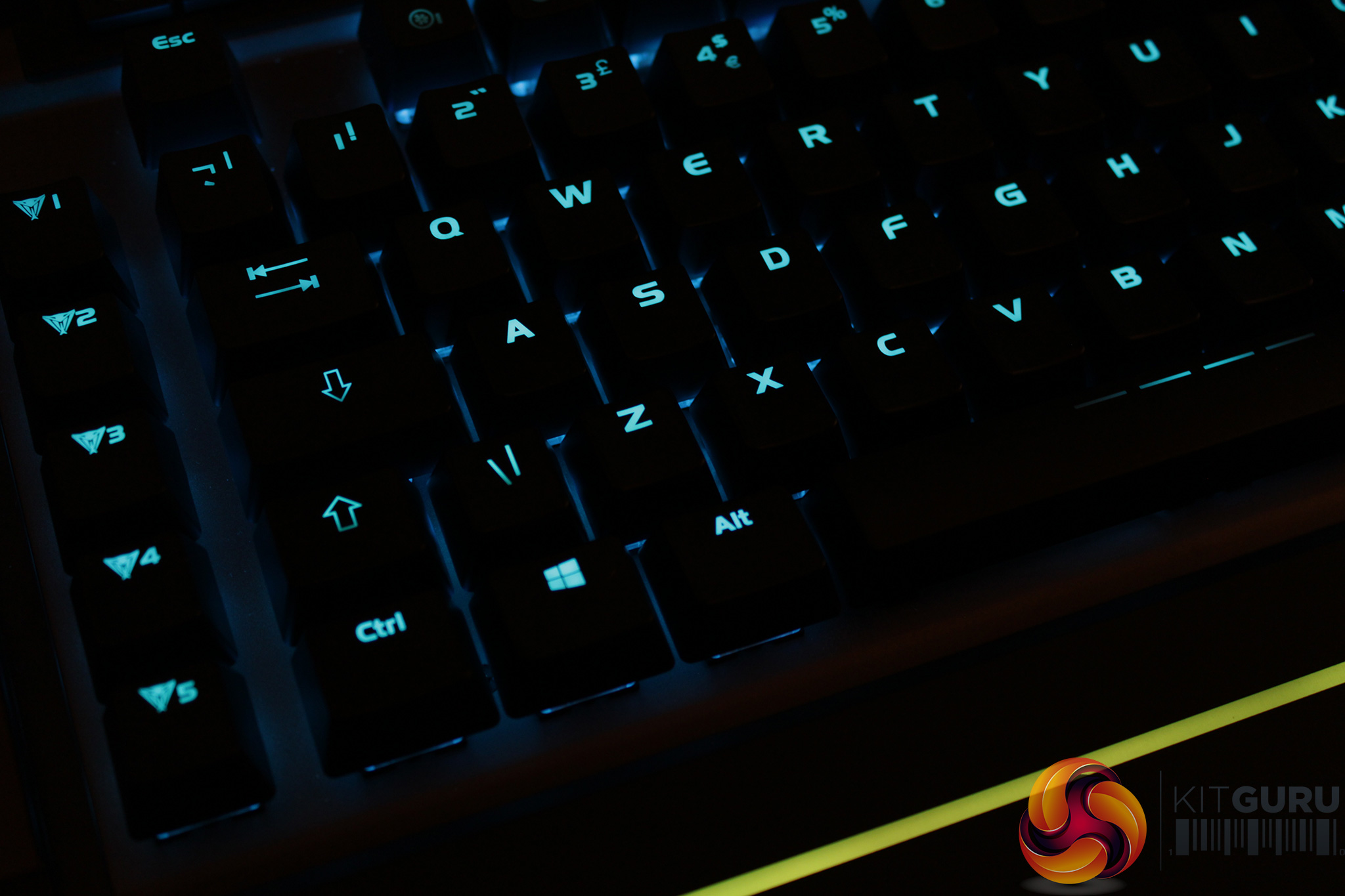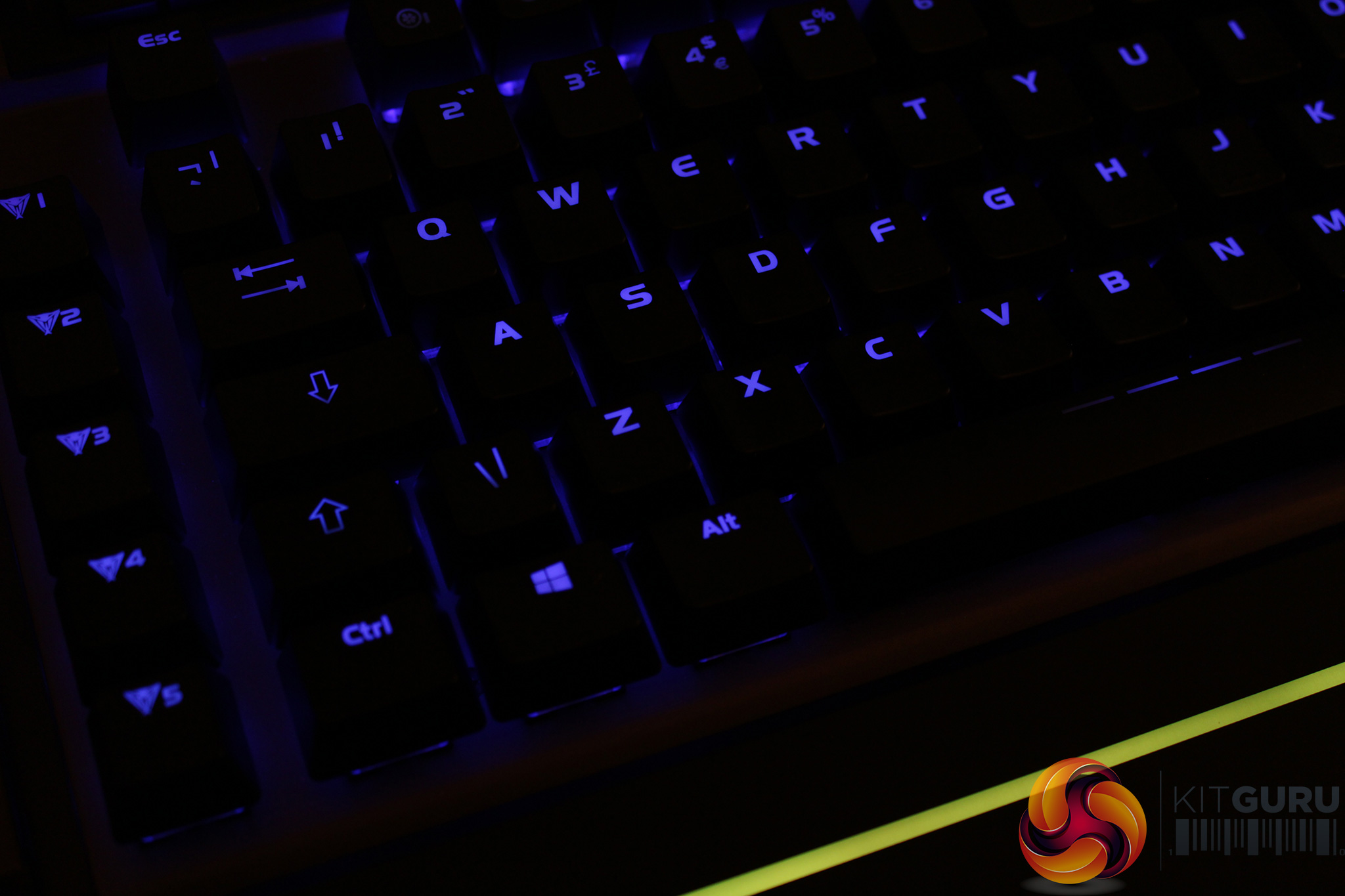 Initially, it took a small adjustment period, but once I had gotten used to the keyboard I felt like the excessive typing I do throughout the day caused a little less fatigue, while holding no real changes in actuation or differences in performance when gaming. In fact, gaming specifically enjoys a lot of features on the V770, from N-key-roll-over and a Windows key lock function to make sure you don't accidentally interrupt your session. Unfortunately, the option to lock the Windows key is software based rather than the function of a dedicated key. The macros come in handy, too, although more time might be needed to get used to reaching for them during faster paced games.
