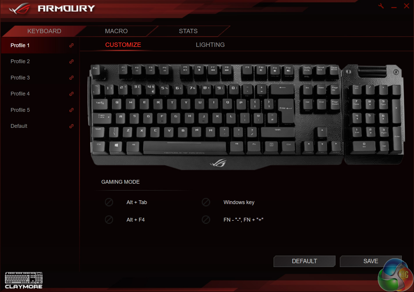 First, let's take a look at the ROG Armoury software that works with the Claymore keyboard.