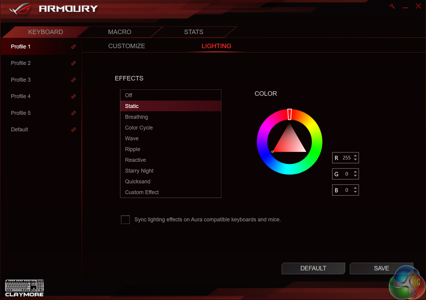 When it comes to lighting, users can also sync up the Claymore's lighting effects with a compatible ROG mouse, using the ROG Sync technology. At the moment, the only compatible mouse is the ROG Spatha which we reviewed over HERE. Still, this is very cool as you can have both your peripherals cycling through the RGB spectrum together, perfectly in-sync.
