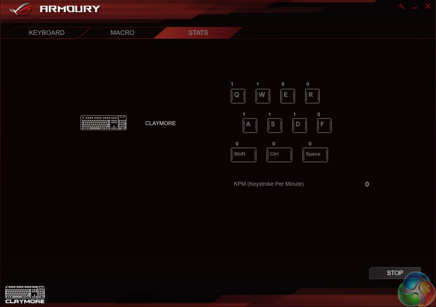 Lastly, there is actually a ‘stats' page. This tracks how many times you use certain keys, and can also let you know how many keystrokes-per-minute you actuate. This may not hugely useful but it is definitely interesting to see how many times you hit the WASD keys during a gaming session, for example.